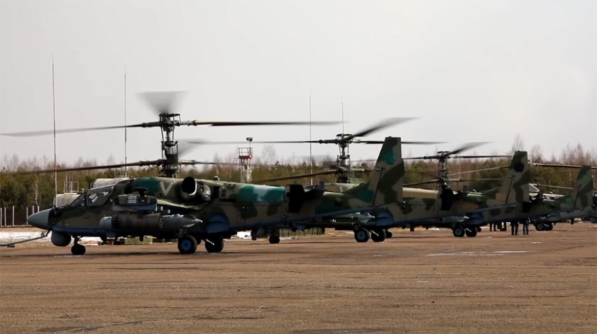 (Merxwire/綜合報導) 俄羅斯國防發布影片,在惡劣的天氣條件下以Mi-28N(北約代號:浩劫)和Ka-52攻擊直升機對烏克蘭武裝部隊的防禦工事和裝甲車輛發動攻擊。俄羅斯空軍以優勢的飛彈、機槍與火炮武器摧毀坦克、裝甲車與各式車輛。